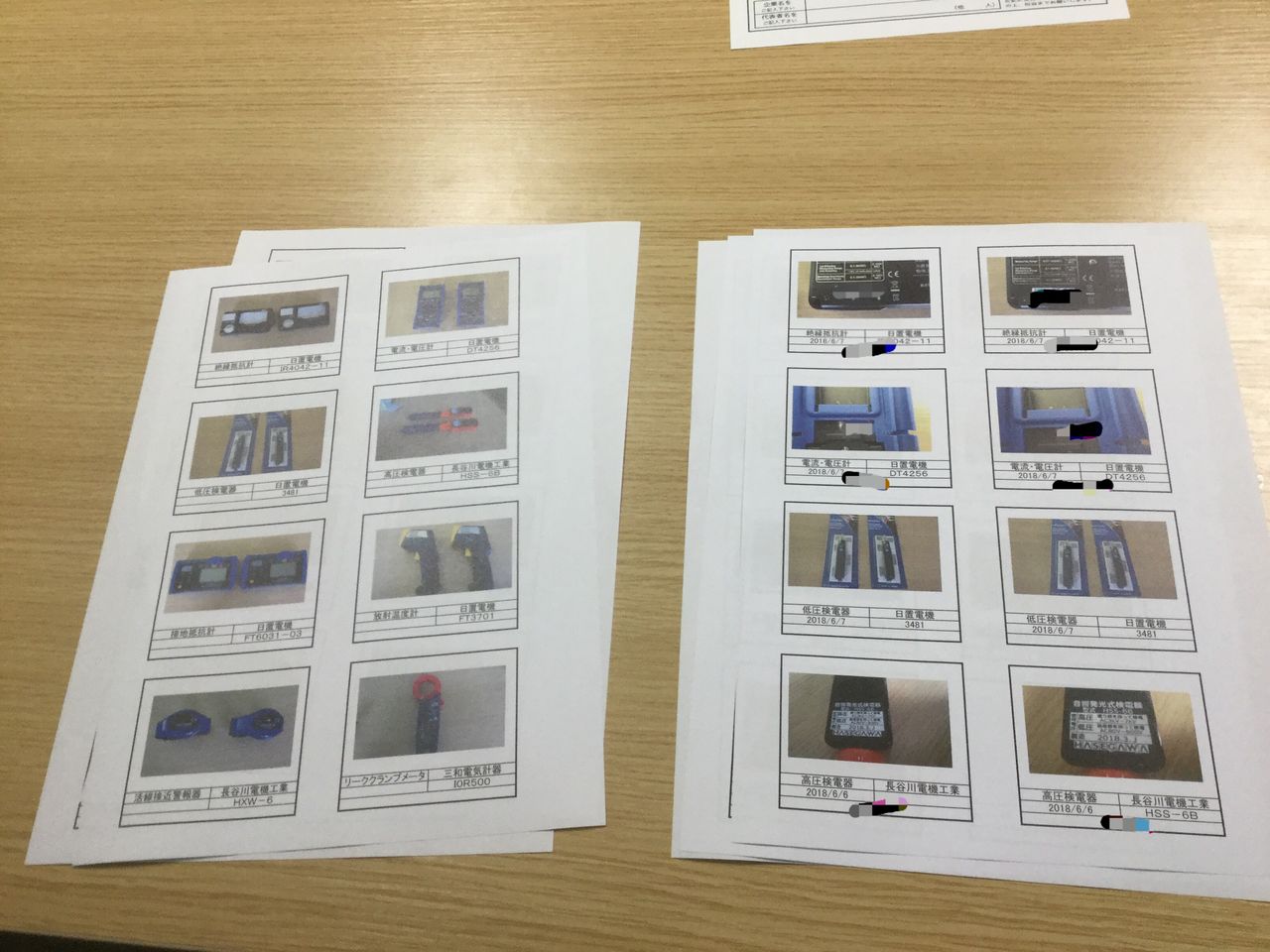 一部ぼかしを入れてますが、そうなんです!!所有機器一覧と言う資料を作成するにあたって、通常ですと数字を記入するだけですが、弊社ではこのようにちゃんと所有してますよ!という事をわかるように写真を撮影して、それをリストにして提出いたします(電力安全課では受け取ってくれない場合もあります)